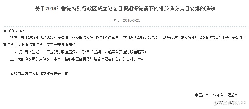 智通财经APP获悉,据深交所发布公告,2018年香港特别行政区成立纪念日假期深港通下港股通(以下简称港股通)交易日安排通知如下: