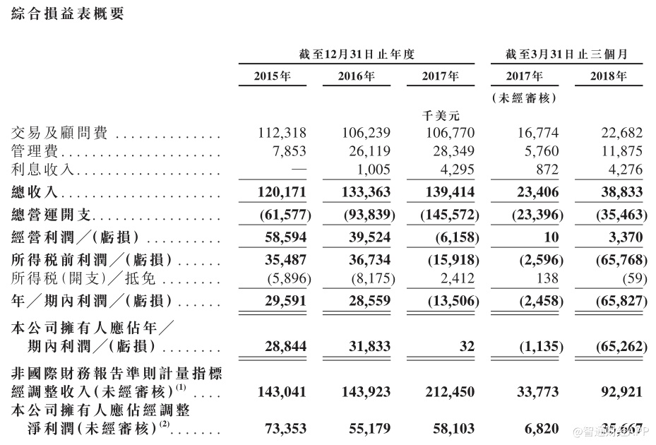 财务方面,根据招股书显示,2017年华兴资本经调整后收入为2.12亿美元,同比增长47.6%。2018年一季度调整后收入为9292万美元、同比上涨1.75倍。净利润方面,受益于投资银行及投资管理业务的成长,今年一季度经调整后净利润达3567万美元,同比增加4.22倍。