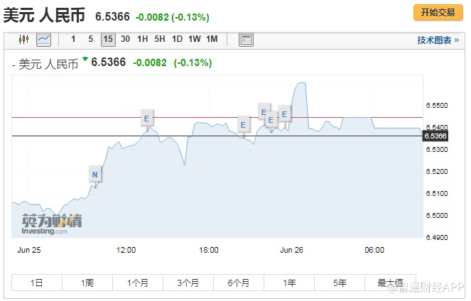 智通财经APP获悉,6月26日,人民币兑美元中间价报6.5180,人民币中间价下调287点,至1月10日以来最低。上一交易日中间价6.4893。上一交易日官方收盘价报6.5240,上一交易日夜盘收盘报6.5381元。