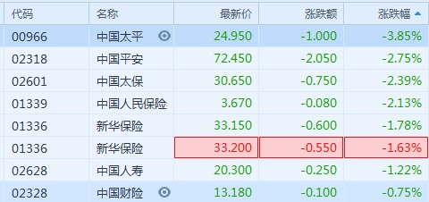 智通财经APP获悉,6月26日,港股内险股板块继续走弱。截至10点34分,中国太平(00966)跌3.85%居首,中国平安(02318)、中国太保(02601)及中国人民保险(01339)均跌逾2%。