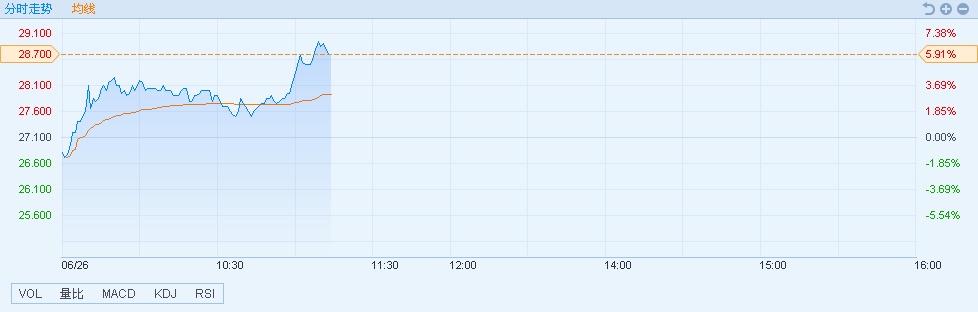 智通财经APP获悉,华虹半导体(01347)股价持续上涨,截至11时13分,涨5.90%,报价28.70港元,成交额为1.68亿港元。