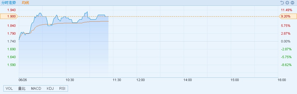 智通财经APP获悉,研祥智能(02308)私有化进程或加快,刺激股价持续上涨。截至11时23分,涨9.20%,报价1.90港元,成交额为1384万港元。