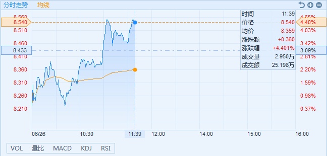 智通财经APP获悉,6月22日,绿叶制药(02186)在股东特别大会上顺利通过收购阿斯利康思瑞康及其缓释片的51个国家及地区的业务的议案,股价受提振,6月26日早盘股价震荡上行,截至11点36分,涨4.4%,报8.54港元,成交额为1.72亿港元。
