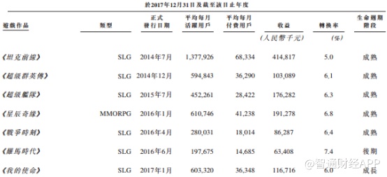 截至2017年年底,该游戏平均月活用户已超过60万,在公司主要运营的7款游戏中位列第三。并且游戏的平均付费用户为36348人,付费转换率高达6%。这一数据远高于游戏行业平均付费转换率3.3%。