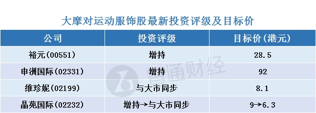 智通财经APP整理,大摩对运动服饰股最新投资评级及目标价如下:
