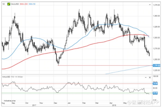 智通财经APP观察到,当前14天RSI指标显示黄金处于2016年12月以来最大的超卖区。金价下一个重要支撑位见略低于1240美元/盎司的位置,不过,可能要等到金价重回1286美元/盎司上方,潜在买家才会出手。