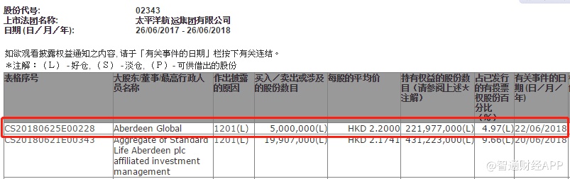 Aberdeen Global减持太平洋航运(02343)500万股,每股作价2.2元