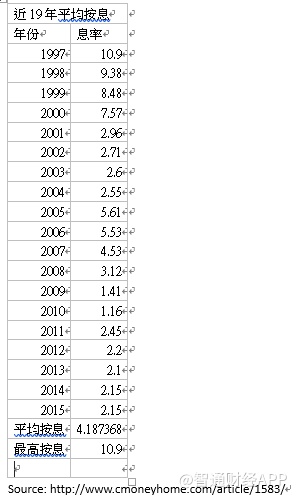 笔者曾经提出如果未来楼市出现下跌,可能会出现利率一直上调而楼价一直下跌的现象。首先我从网上的资料中整理出过去19年的平均香港房贷利息的图表,读者可见最高利率为1997年10.9%,而最低是2010年的1.16%。