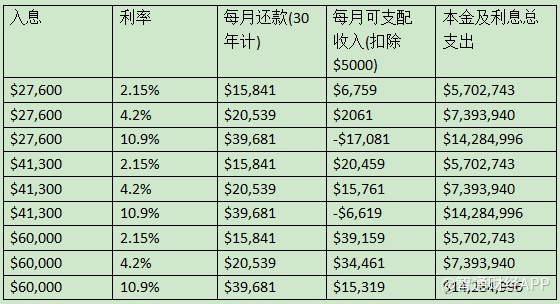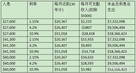 看完上图,读者不难发现。利率对房价的影响,虽然首付很低,但一旦利率上调起来,即变成利率加本金为千万。至于六万收入能不能买房,当然要看工作的稳定性,自己的储蓄率,家庭的背景及工作的前景。但如果一般来说,在香港,月入最少有六万或以上买房才算有持续性。