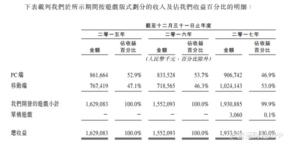 截至2017年12月31日,旗下游戏登陆用户数累计约7500万人。《神武3》端游系列截至2017年底累计登记用户数达2760万人。《神武》端游系列收入2015年、2016年、2017年分别约为 7.49亿元 、 7.29亿元 、 7.74亿元 。分别占同期收入比的 46% 、 47% 、 40% 。2017年,神武3端游及神武3手游微信渠道的观看次数分别达约8700万及6000万。