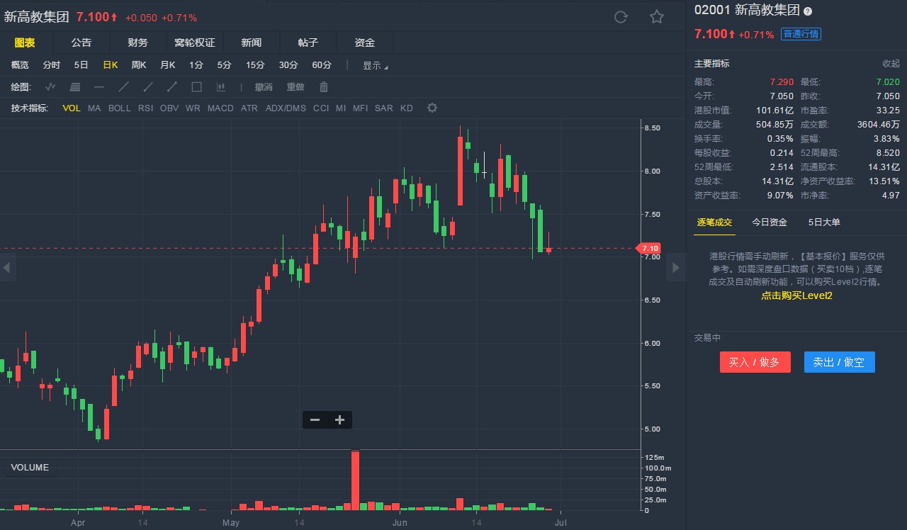 截至6月28日14:13,新高教集团涨0.71%,报7.1港元。