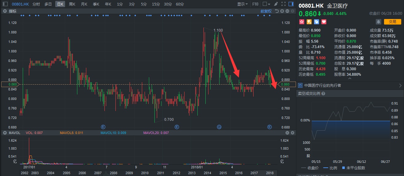 以6月27日发布了年度业绩的金卫医疗(00801)为例,在连续4个财年亏损后,该公司终于实现了大幅度扭亏为盈,净利润约为33.99亿港元(单位下同)。可就是这样,二级市场也没让其尝到正面业绩带来的喜悦。据智通财经APP观察,截至收盘,该股跌幅达到4.44%,跌幅高居医疗设备板块前列。