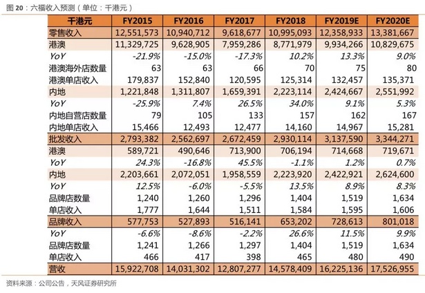 仍然看好六福的中高端港资品牌定位以及内地渠道下沉的店铺布局,伴随下半年广深港高铁开通,预计FY19公司港澳地区将取得双位数增幅,在内地市场实现单位数增幅。但赴韩游或将分流赴港旅客,且公司内地市场发展承压,再加上当前P/E 13.1x,虽与龙头周大福相比较低,但相对内地老凤祥而言并无过多估值优势。下调公司目标价至35港元,根据预期公司FY2019 EPS2.6港元,对应P/E 13.5x,下调至“增持”评级。