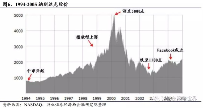 上世纪末,PC的普及驱动了互联网浪潮,各类DOT COM公司如雨后春笋,纳斯达克在2000年3月触及顶峰;随后就是长达多年的低位盘整,互联网企业受到巨大冲击,其中包括Friendster和MySpace两家社交网络龙头。在余波中的2004年,大二学生扎克伯格在哈佛宿舍内创建了Facebook。