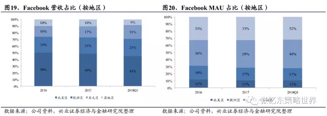 高渗透的广告业务:受益于欧洲中小企业强势增长及以德国为代表的欧洲主要经济体经济势头良好,18Q1欧洲区收入30亿美元,同比增长54%;随着Internet.org的开发、印度市场数据计划落地、在新兴市场投入建设数据中心等举措,亚太区收入25亿美元,同比增长57%;北美区以54亿美元维持最大收入份额,但其占比呈下降趋势,预计该部分广告业务将进一步渗透至新兴市场。