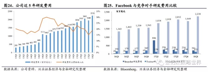 公司始终坚持以技术为本以支持用户社交平台运营。其研发投入比例稳定(20%左右),规模一直处于增长状态,是同业竞争者难以望其项背的。目前公司已将VR、AR、机器学习等技术嵌入至社交平台,配套数据中心已遍布全球30余个国家。