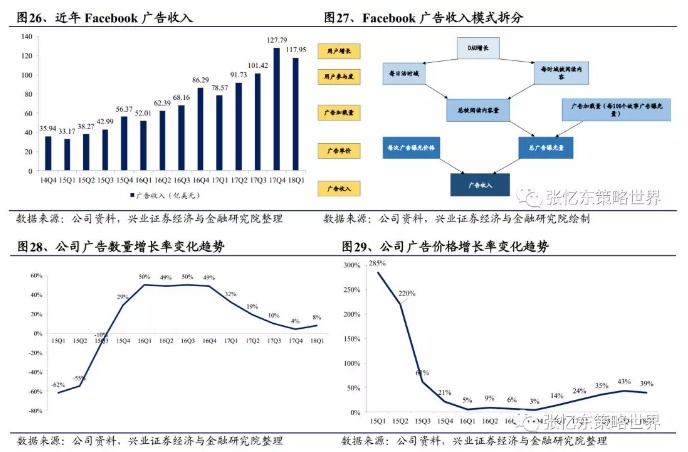 我们认为,推动其广告价格上升原因主要如下:1)广告投放的精准度提升,获得更高广告单价;2)Facebook巨大的月活跃用户数量和流量,对广告主具有很大吸引力;3)广告位增长放缓,而广告主需求日益旺盛导致供不应求,广告单价抬升。而广告精准投放受益于公司的数据、算法及信息流等广告形式的优势。