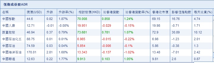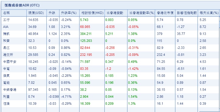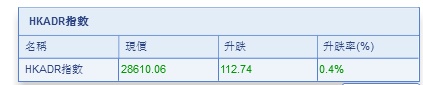 智通财经APP获悉,截至6月28日美股收盘,港股ADR指数收报28610.06点,升112.74点,升幅0.4%。汇丰控股收报73.68元,较港收市升0.781元;腾讯控股上涨,收报384.21元,较港收市升5.21元。