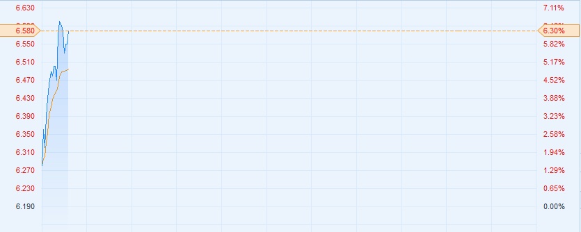 智通财经APP获悉,新城发展控股(01030)主席王振华近日屡屡增持,同时获野村也唱多,该股今早开盘后迅速拉升。截至9时45分,该股涨5.65%,报价6.54港元,成交额为2515万港元。