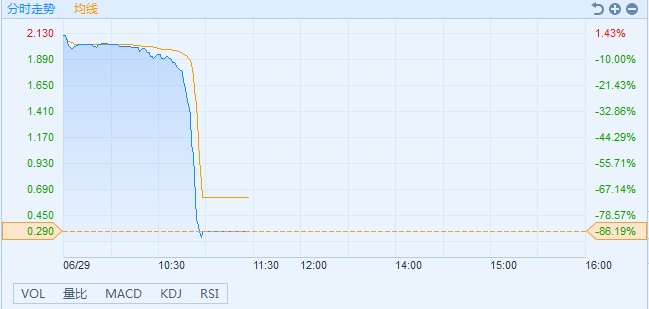 智通财经APP获悉,浩沙国际(02200)股份自6月29日上午10点57分起短暂停止买卖。截至停牌,报0.29港元,跌86.19%,成交额为1680.05万港元。