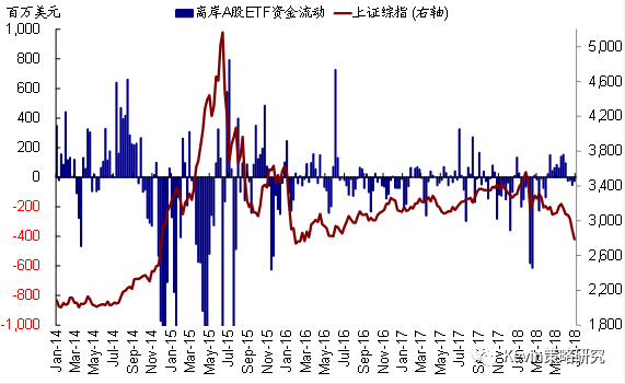 本周资金继续流出香港离岸上市的追踪A股市场的ETF基金,但规模基本减半。截至周四,追踪A股的ETF流出2556万美元,明显好于上周流出5225万美元的情况。