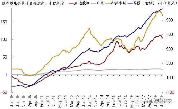 本周全球资金回流主要发达债市,但仍加速流出新兴债市。具体来看,美国债市转为流入24.7亿美元;继连续8周的净流出后,日本债市也转为流入2104万美元;发达欧洲债市流入12.6亿美元,结束了此前连续5周的净流出;但在美元走强并维持高位的背景下,资金加速流出新兴市场债市(本周流出29.1亿美元vs. 上周流出16.7亿美元)、已经是连续第10周净流出。整体来看,本周全球债市再度转为流入8.5亿美元,明显好于上周流出57.2亿美元的情况。