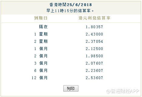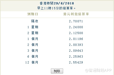根据智通财经APP之前的报道统计,隔夜HIBOR、1月HIBOR以及3月HIBOR均较25日高点再次提升,再次刷新十年新高记录。
