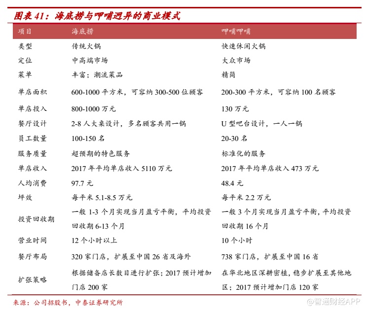 1) 两者迥异的商业模式。海底捞定位中高端传统火锅市场;呷哺定位大众休闲火锅市场。