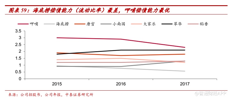 呷哺偿债能力行业最优,海底捞偿债能力行业最差。