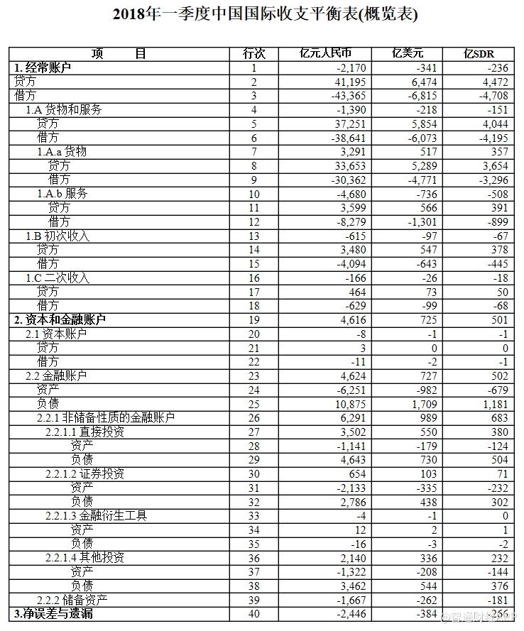 智通财经APP获悉,6月29日,外汇局公布18年一季度国际收支平衡表。