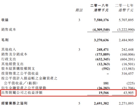 另外,虽然相比于去年同期并没有收入的物业销售部分,公司录得了4.46亿元的营收,但是如果算上除投资物业和衍生金融资产的公平值变动公平值收益的话,其实物业开发及投资整块业务仅贡献了8886万元的溢利,相比于2017年的3.16亿元的溢利贡献是大幅下降的。