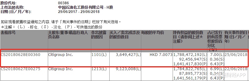 花旗增持中国石油化工(00386)364万股,每股作价7.01元