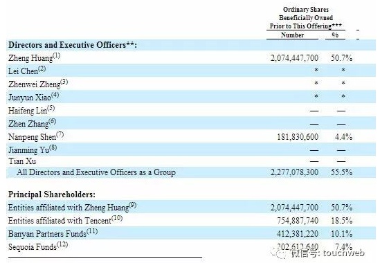 本文来自“雷帝触网”,原标题为《拼多多递交招股书:腾讯持股18.5% 黄峥将捐2.3%股份》。