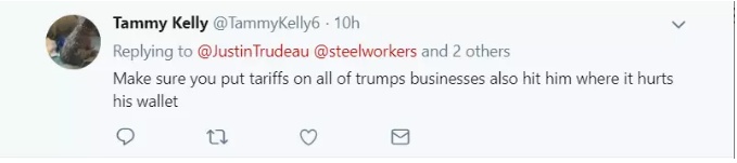 特鲁多说:“我们要为我们的工人站台,支持我们的产业。更多了解我们采取的对策。”