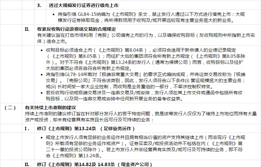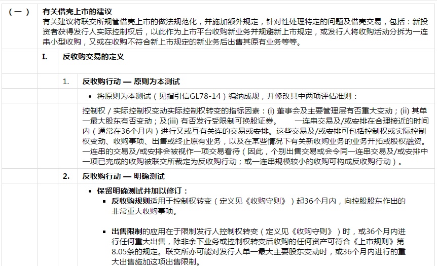 最后就是收紧反收购规则,防止借壳上市(尤其是涉及壳股公司的)现象。