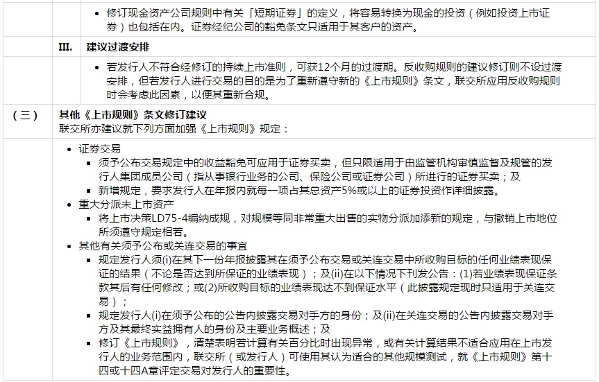 第二是提高上市发行人适用的持续上市准则,遏止“造壳”及“养壳”活动;
