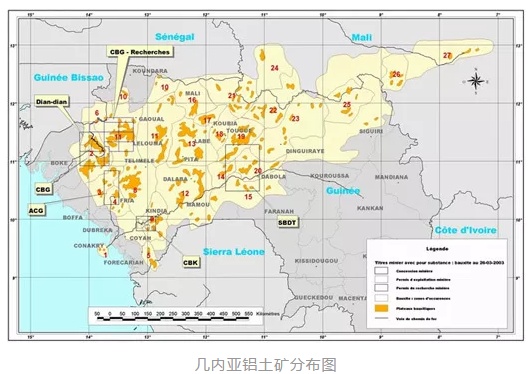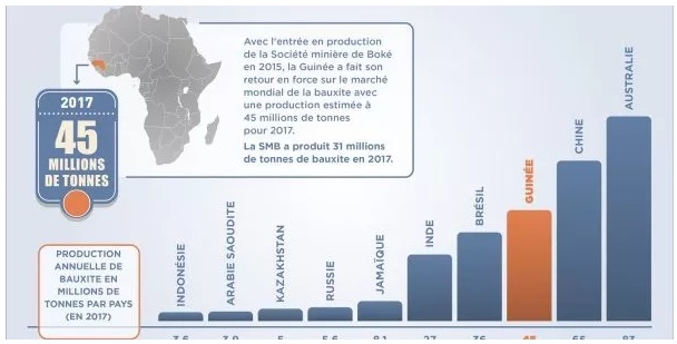 几内亚几乎全部的收入都来自铝土矿的出口,然而该国却没有独立的矿业开发能力,在中国人到来之前,几内亚铝土矿开采被美铝(Alcoa)、力拓加铝(Rio Tinto Alcan)、俄铝(UC Rasul)等国际铝业巨头组成的先驱者所占据。