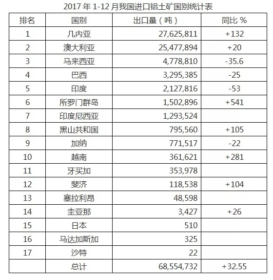 得益于赢联盟的大获成功,几内亚的异军突起填补了东南亚断供的缺口。2017年,几内亚向中国出口铝土矿2763万吨,同比增加132%,超越澳大利亚成为我国第一大铝土矿来源国。
