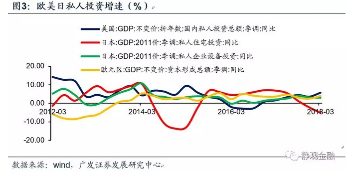 从分项情况看,2018年1-5月美国新屋开工增速持续回升,5月已升至20.3%,为2016年11月以来新高,符合我们对于美国地产投资拉动经济增长的预期;除日本私人住宅投资外,欧美日私人投资整体保持上升态势,符合我们对资本开支上升期以及新政红利的预判。