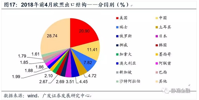 2018年2H欧元区经济大概率边际改善。前文所述,上半年欧元区经济增长动能的衰减主要在于2017年汇率升值过快;反观上半年,在经济边际下滑、欧元区货币政策未有进一步收紧动作的背景下,欧元兑美元(高低点计算)已贬值8%。叠加原油价格同比仍处高位,我们已经看到欧元区5月调和CPI同比由4月的1.3%跳升至1.9%,实际利率重新下滑、私人部门信贷同步回升;叠加美国经济保持强劲。且美国为欧盟最大出口对象两大因素,4月欧元区出口增速也回升至8%,2、3月则分别为2.9%及-3.2%。换言之,在上半年汇率重现贬值的背景下,二季度欧元区已有边际改善。