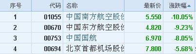 智通财经APP获悉,今日离岸人民币兑美元跌破6.73关口,日内大跌近500点,刷新近1年以来新低。航空股重挫,截至11时51分,南方航空(01055)跌10.05%,报价5.55港元;东方航空(00670)跌9.23%,报价4.82港元;中国国航(00753)跌8.05%,报价6.97港元。