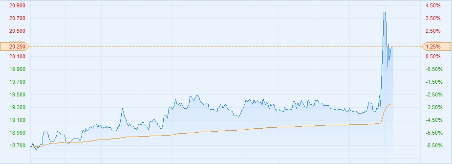 智通财经APP获悉,内房股整体受压,中国恒大(03333)走出独立行情,盘中直线拉升4%,截至15时33分,升幅收窄至1.25%,报价20.25港元,成交额为9.05亿港元。