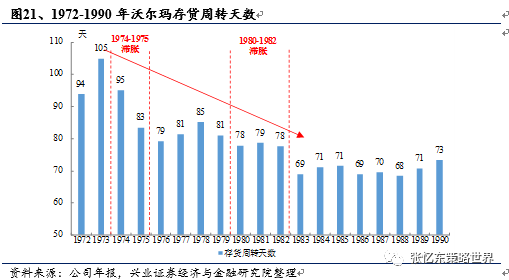 ——在经济危机中,沃尔玛提高效率,降低成本。汲取整个行业遭受挫折的教训即配送效率下降,通过仓储式经营、精兵简政、加快物流及现金流速度,提高了效率,降低了成本,存货周转天数不断下降。