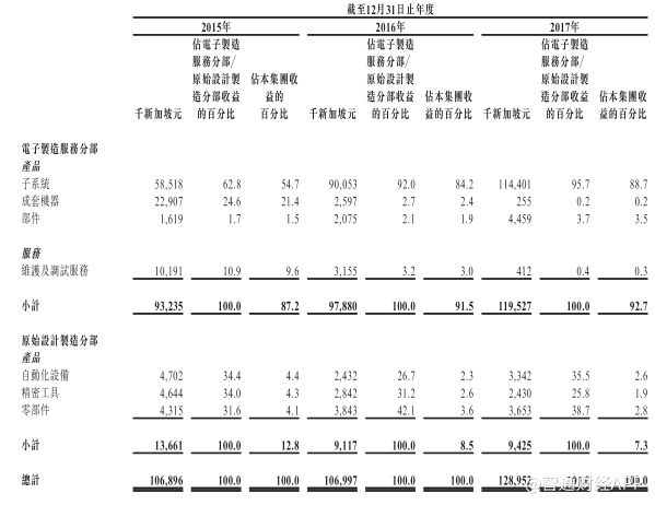 公司目前有电子制造服务分部及原始设计制造分部两个分部。电子制造服务分部主要制造子系统、成套机器及部件,以及提供保修期后维护及调试服务。原始设计制造分部主要设计及制造自动化设备、精密工具及部件。