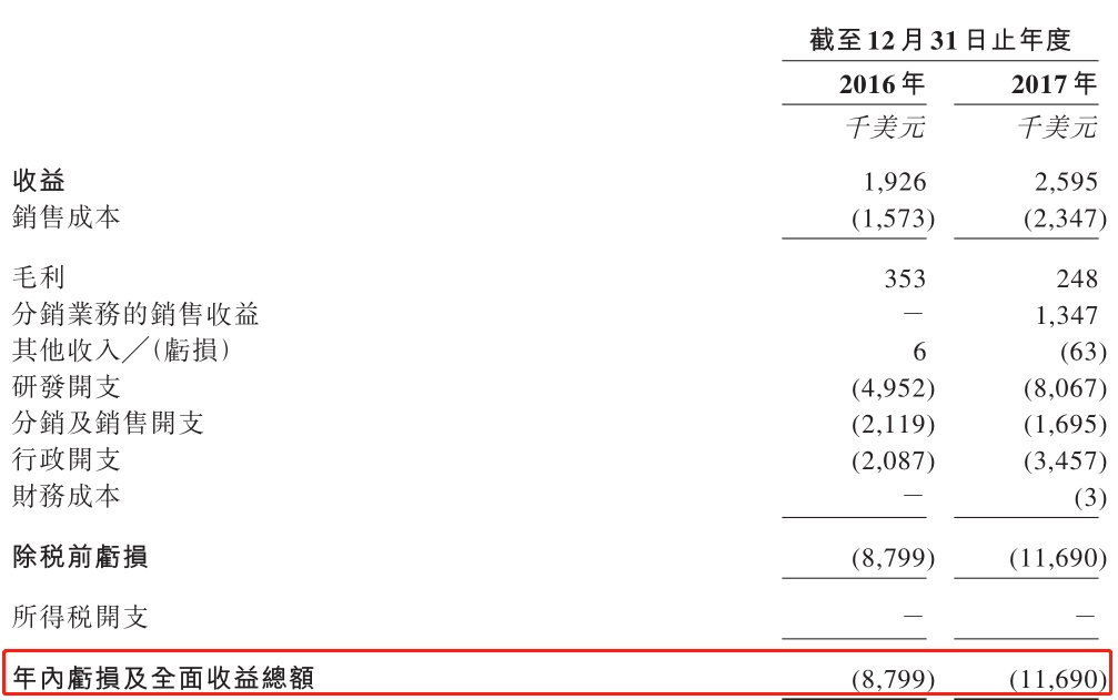 截至2017年12月31日止,公司年度收益为259.5万美元,同比增长35%;年度亏损及全面收益总额扩大86%至1169万美元。招股书显示,公司拟将集资所得将用作核心产品的持续研发及临床开发等。