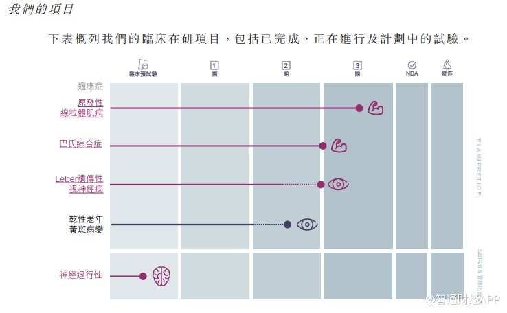 Stealth BioTherapeutics主要专注于发现、研发与线粒体功能失调相关的疾病的新型首创疗法。Elamipretide为其主要候选产品。