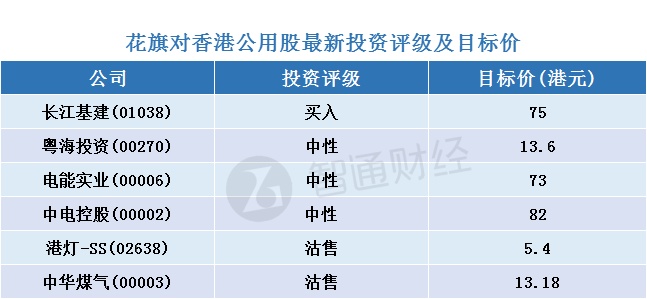 智通财经APP整理,花旗对香港公用股最新投资评级及目标价如下: