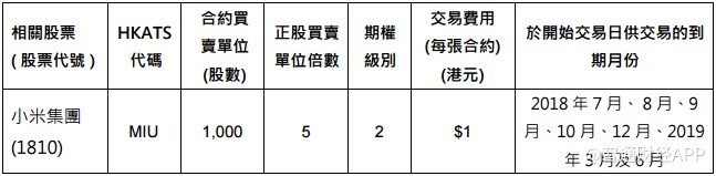 根据港交所于2月14日发布的股票期货交易费用豁免的通告显示,2018年8月31 日前,小米股票期货合约的交易费用可以豁免。同时,小米集团股票期货于推出交易的首6个月将豁免证监会征费(每张合约每边港币0.1元),即由2018年7月9日起至2019年1月8日,包括首尾两天。