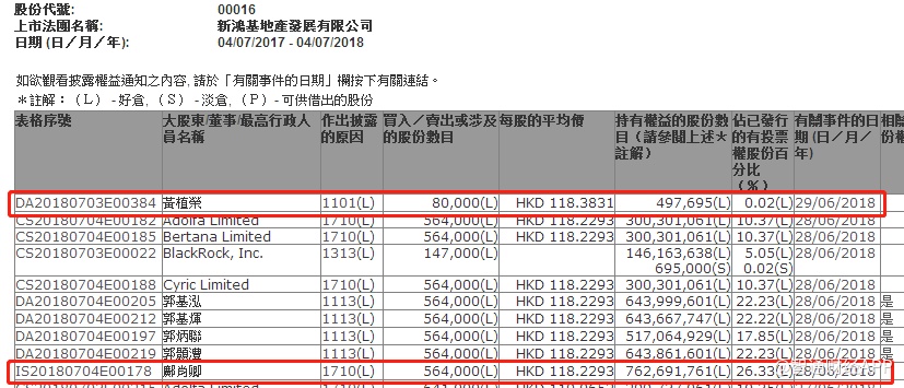 此外,公司董事黄植荣也在上周五(29日)增持新地8万股,每股作价118.3831,涉资947万元,最新持股量增至0.02%。