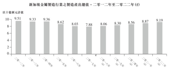 根据机构预测,新加坡金属制造产出价值将于2018年后以约3.34%的复合年增长率增长,至2022年年底将达至约92亿新元。